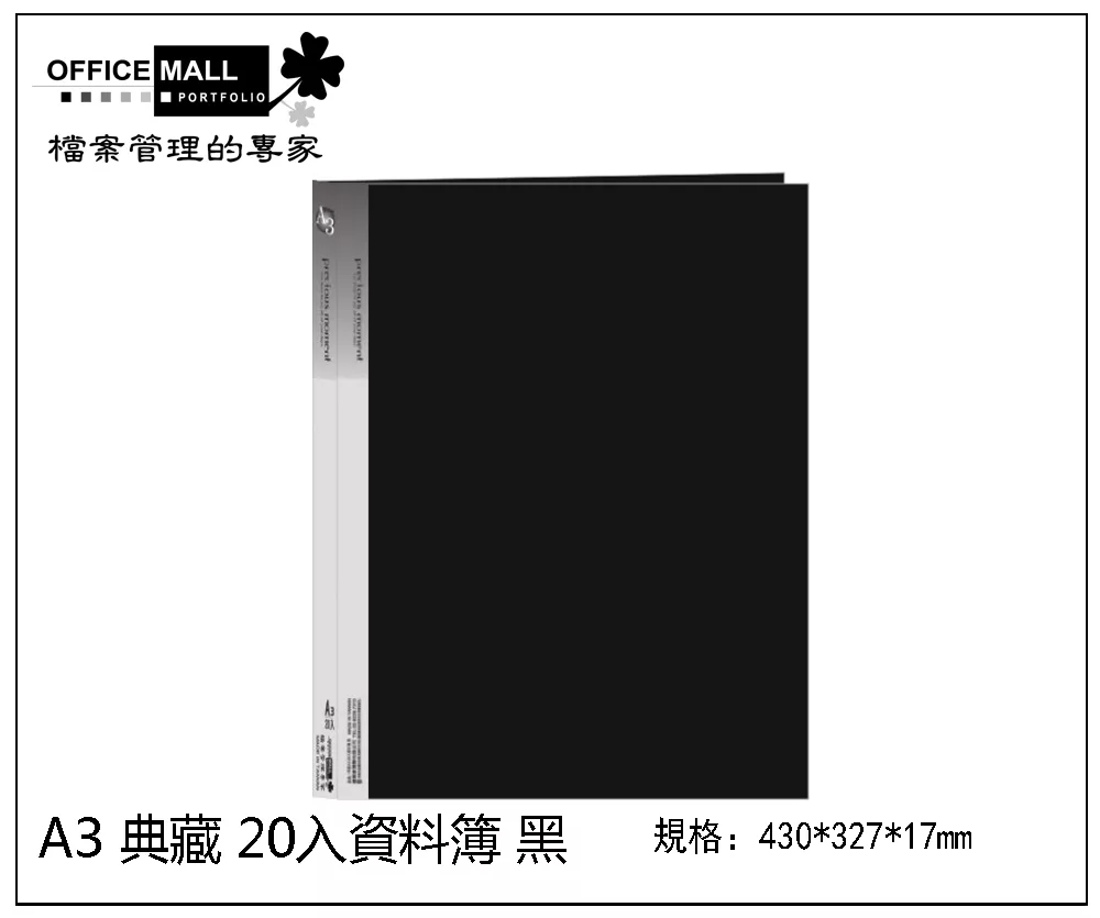 博客來e-coupon 【檔案家】A3 典藏 20入資料簿 黑